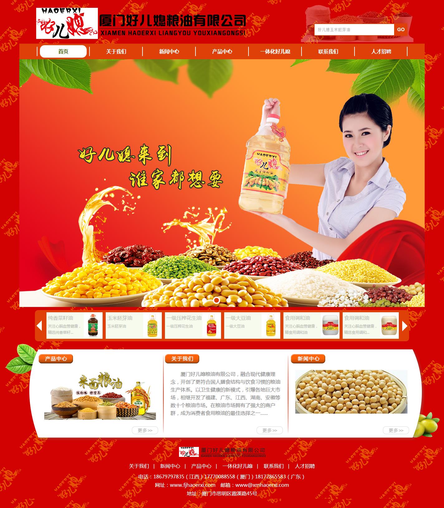 厦门好儿媳粮油有限公司,融合现代健康理念,开创了更符合国人膳食结构与饮食习惯的粮油生产体系。以卫生健康的新模式,引爆各地巨大市场,相继开发了福建、广东、江西、湖南、安徽等数十个粮油市场。在粮油市场拥有了强大的商户群,成为消费者食用粮油的最佳选择之一....