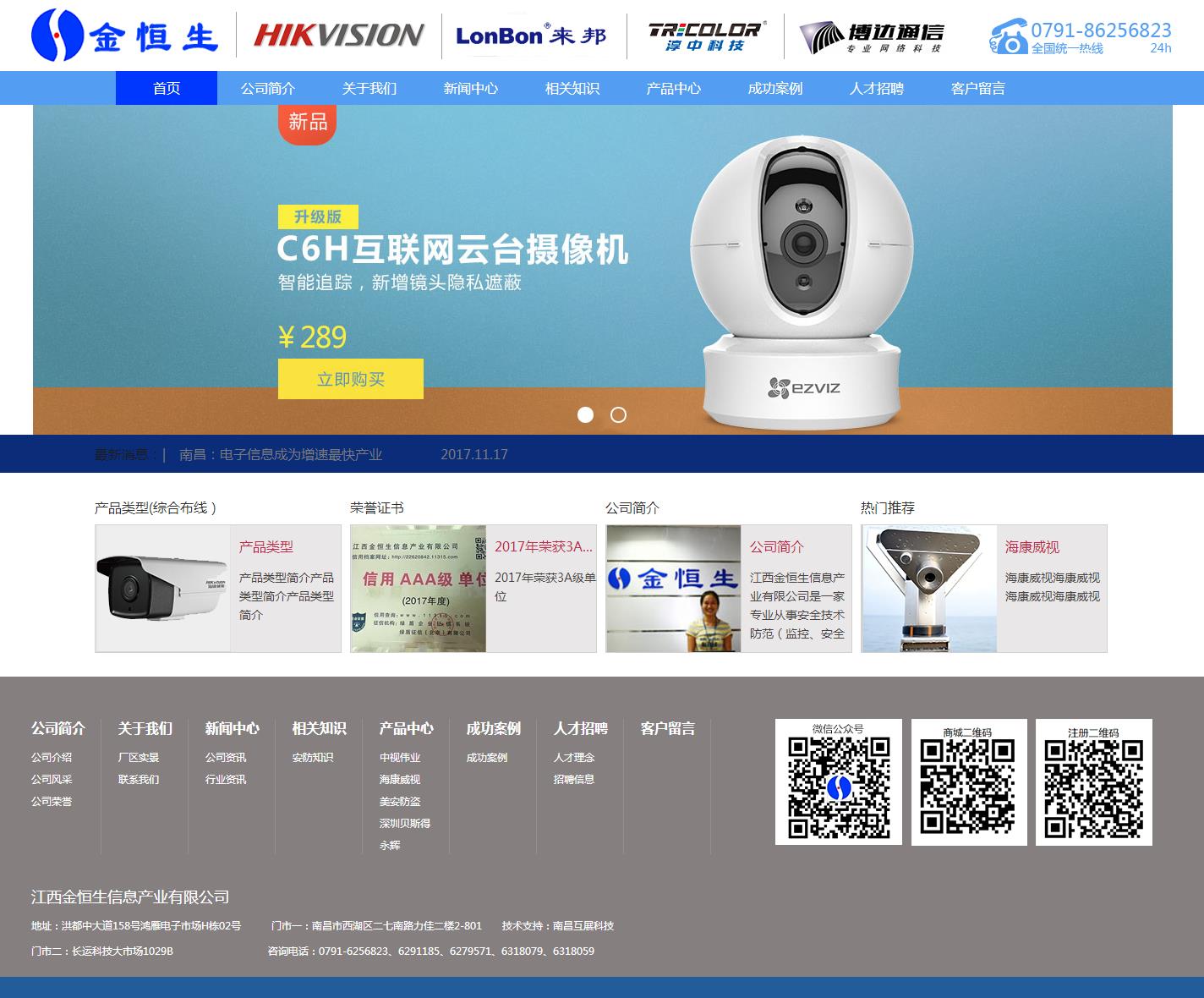 江西金恒生信息产业有限公司是一家专业从事安全技术防范(监控、安全报警、楼宇对讲、门禁、停车场、背景音乐等)、计算机网络应用开发、系统集成、综合布线、网络通讯工程设计、安装、维护的现代高科技专业公司。并且代理了国内外众多知名品牌(美的、海康威视、欧思卡、永辉、科达、康祺、天敏)在江西的销售和售后服务工作。 公司注册资金500万,获得省公安厅安全技术防范一级资质;获得ISO9001:2008质量管理体系认证;获得2009年南昌市AA级“守合同重信用”单位称号。 金恒生自成立以来,始终以客户需求为工作导向,以客户满意为工作追求,非常注重人才的聚集培养,凭借着一套现代企业的管理制度和各方面的优势,吸纳了一批优秀销售、技术和管理人才,公司现拥有一批优秀的销售精英、技术精良的工程设计人员和经过专业培训高效率、高素质的现场施工队伍。公司下设有渠道分销、行业客户、门市、工程技术、人力资源等八个综合部门。在销售和工程实践中,金恒生依靠这批富有经验,有挑战精神和开拓能力的优秀员工,借助于国内外众多供应商提供的国际最新技术和设备,不断地将世界行业最新技术运用到工程中,积累了丰富的工程