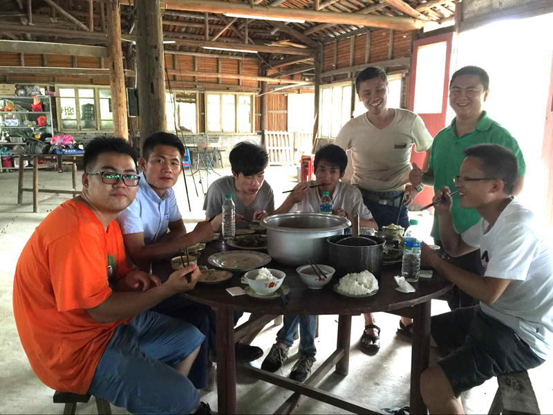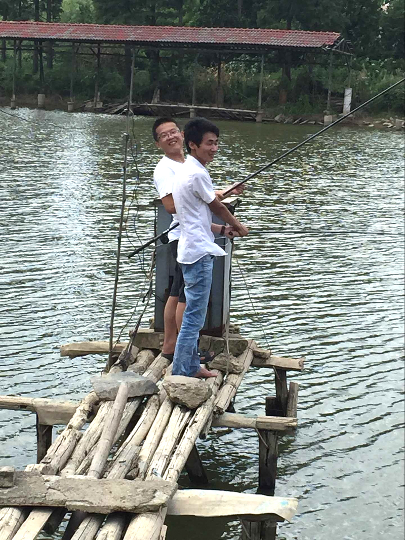 公司组织去乡下钓鱼,活动成功的将大家都晒黑了,